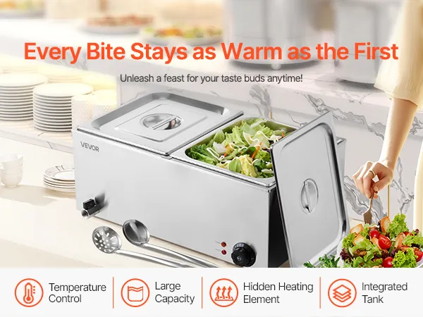 This commercial food warmer is your perfect food guardian, keeping dishes warm at family gatherings or parties. It ensures your food stays perfectly warm and ready to delight your taste buds at any time, creating an unforgettable dining experience.