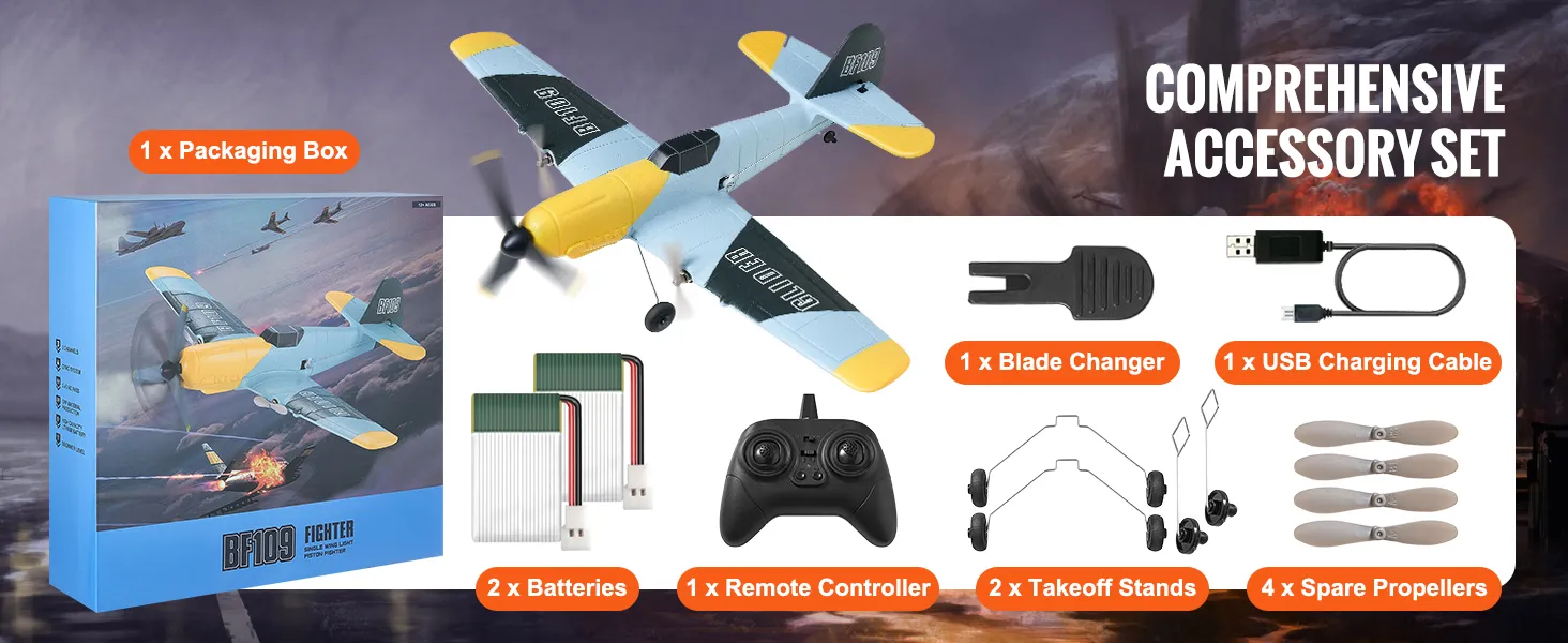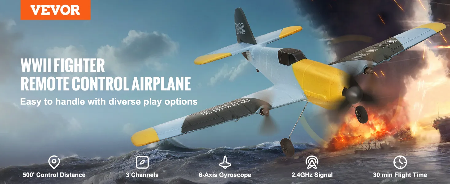 Het WWII-gevechtsvliegtuig speelgoed heeft een WWII-gevechtssimulatieontwerp. Dit biedt een meeslepende vliegervaring die perfect is voor luchtvaartenthousiastelingen. Met een spanwijdte van 14,8 inch en gemaakt van lichtgewicht EPP-materiaal, is dit op afstand bestuurbare vliegtuig ontworpen om buitenomstandigheden aan te kunnen en kan het stoten weerstaan tijdens het opstijgen en landen. De stevige structuur zorgt ervoor dat u kunt genieten van vliegen zonder constante reparaties of onderhoud. Het is dus een betrouwbare keuze voor langdurig vliegplezier.