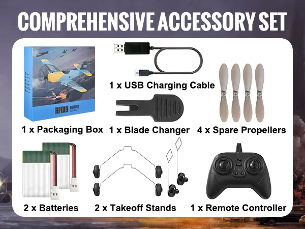 Het is eenvoudig om de reserveonderdelen van ons RC-vliegtuig te verkennen, zoals batterijen en propellers. Wanneer u vervangingen nodig hebt, hoeft u niet te wachten op lange verzendtijden of te zoeken naar compatibele onderdelen. Ons RC-vliegtuig heeft de benodigde reserveonderdelen om ervoor te zorgen dat uw vliegsessies ononderbroken zijn. Of u nu een beginner of een ervaren vlieger bent, ons RC-vliegtuig heeft u gedekt voor probleemloze vliegavonturen.