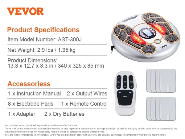 Dual Technologies: VEVOR foot circulation stimulator combines EMS and TENS tech, specifically designed to relieve foot pain and promote overall comfort. Through effective stimulation, you can experience muscle relaxation, relief from bodily fatigue, improved blood circulation, and accelerated metabolism.