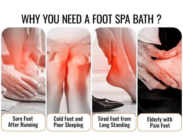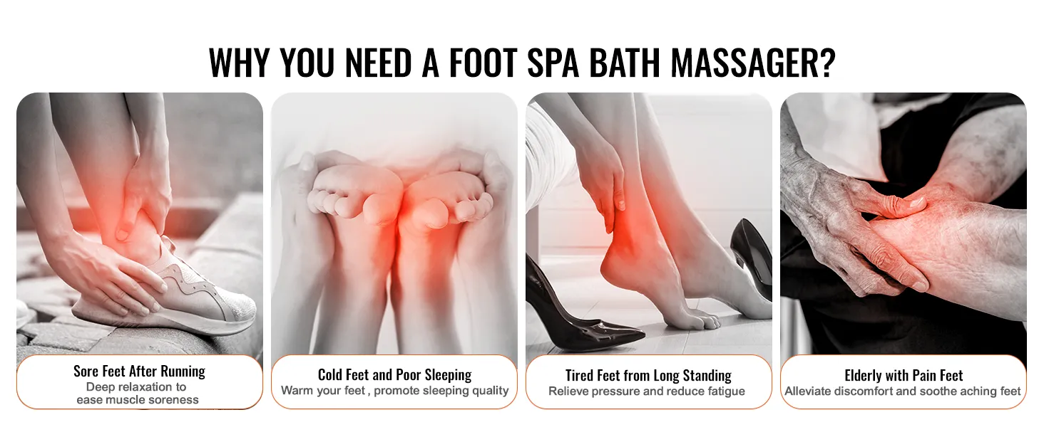 Relieve foot soreness from long hours of standing or walking, soothe tired muscles, and promote blood circulation. This foot spa for stress relief is perfect for alleviating discomfort and revitalizing your feet, offering deep relief to enhance your daily well-being.
