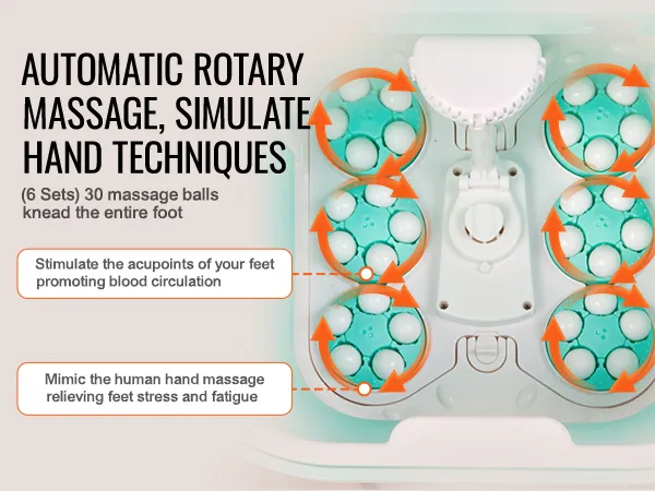 Equipped with 6 sets (30 shiatsu massage balls) that cover the entire sole, this pedicure foot spa tub precisely stimulates foot acupressure points, effectively promoting blood circulation. It mimics the human hand massage, alleviating foot pain and fatigue from long hours of standing or walking.