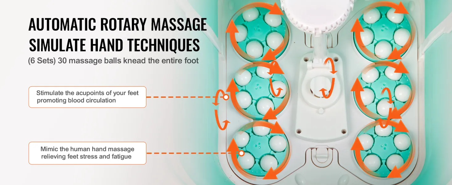 Automatic Rotary Massage: Equipped with 6 sets (30 shiatsu massage balls) that cover the entire sole, VEVOR foot spa bath massager provides a full-foot massage experience. With human-like massage techniques, it precisely stimulates foot acupressure points, effectively relieving foot fatigue and tension. Enjoy a professional-grade foot massage right at home.