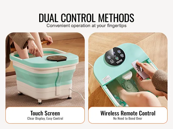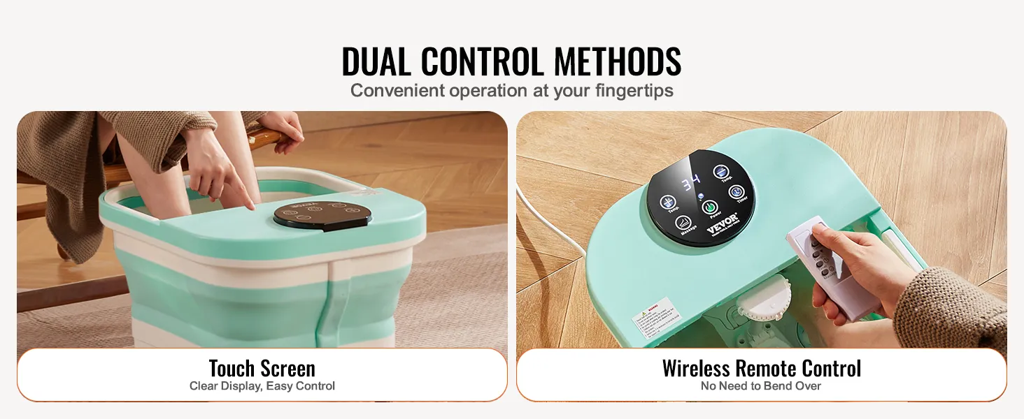 This foot soaking tub is equipped with both a touchscreen and a wireless remote control for added convenience. The touchscreen allows you to easily adjust settings with just a tap, while the wireless remote enables you to control the device without bending over.