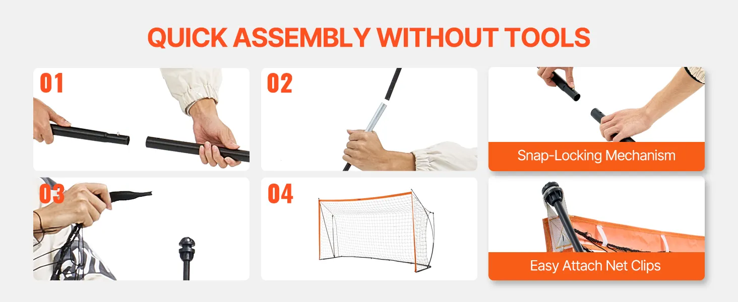 Snelle installatie zonder gereedschap: Dankzij het klikmechanisme is het opzetten van dit trainingsvoetbaldoel een fluitje van een cent. U heeft uw poort in een mum van tijd klaar voor gebruik, zonder gereedschap of ingewikkelde montage.