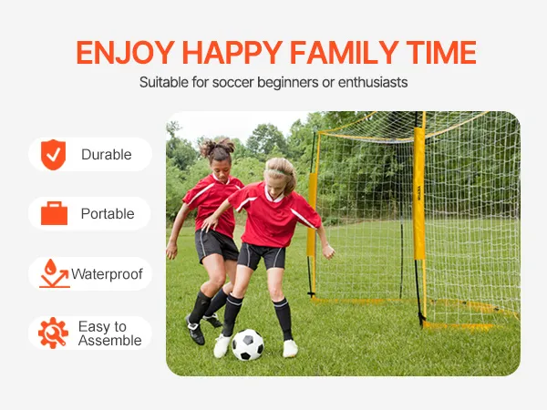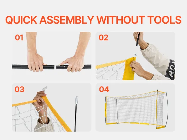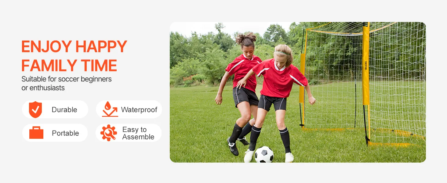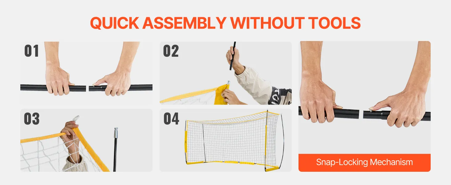 Dankzij het klikmechanisme is het gebruiksklaar maken van dit draagbare voetbaldoel een fluitje van een cent.