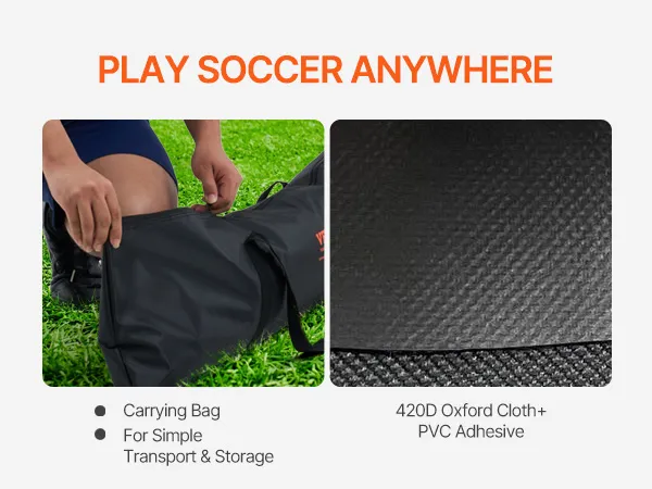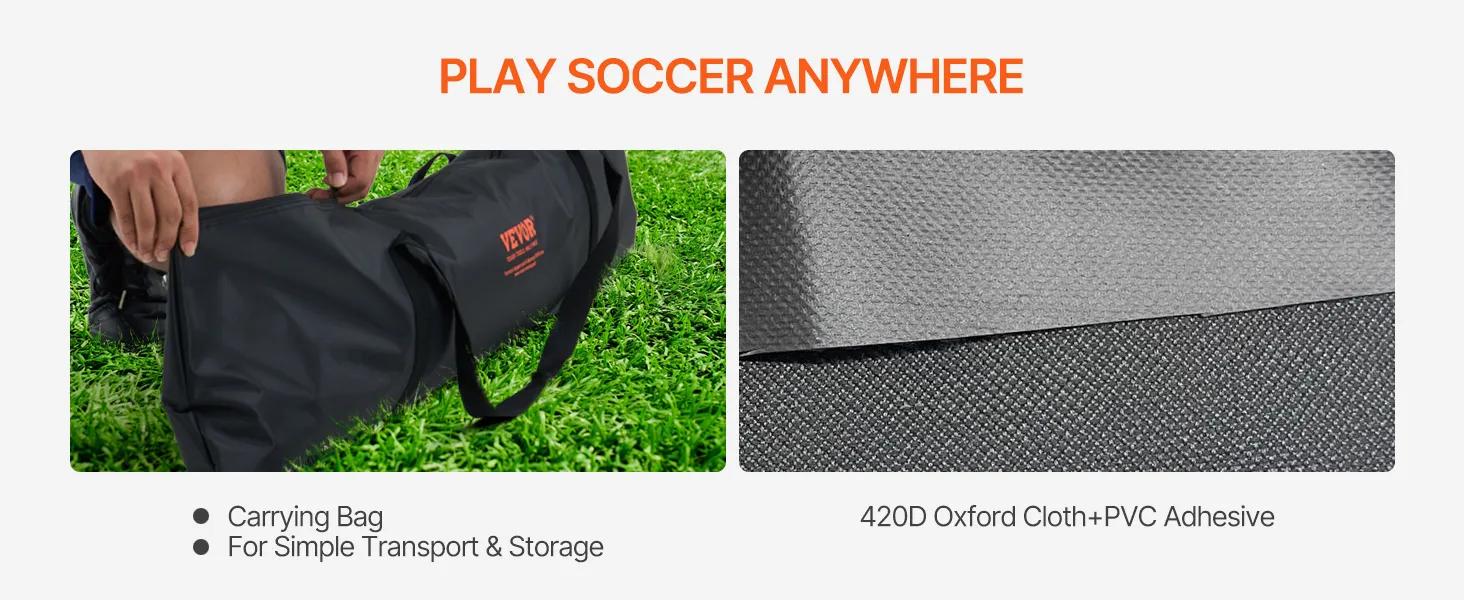 Draagbaar en praktisch: ons draagbare voetbaldoel is ontworpen voor plezier onderweg en wordt geleverd met een handige draagtas van 420D Oxford-stof en PVC-lijm. Deze tas vereenvoudigt het transport en de opslag, zodat je het spel gemakkelijk overal mee naartoe kunt nemen.