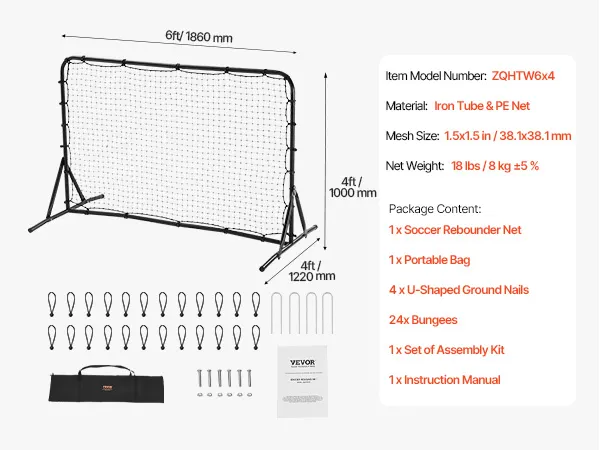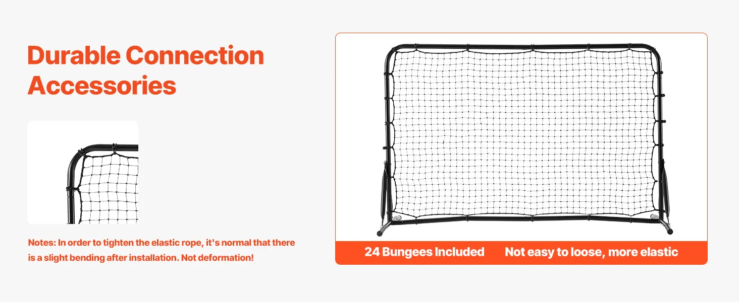 Eenvoudig op te zetten: deze voetbal-reboundnetten zijn gebruiksvriendelijk. Monteer het deurkozijn eenvoudig in delen en zet de poort vast met spankoorden. Je kunt ze zonder zorgen gebruiken.