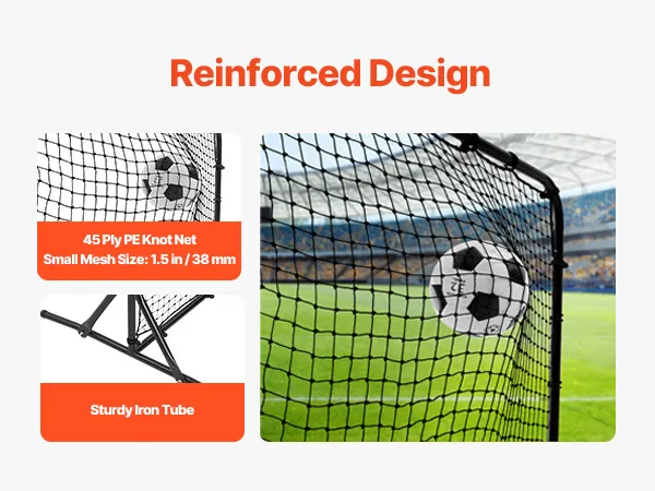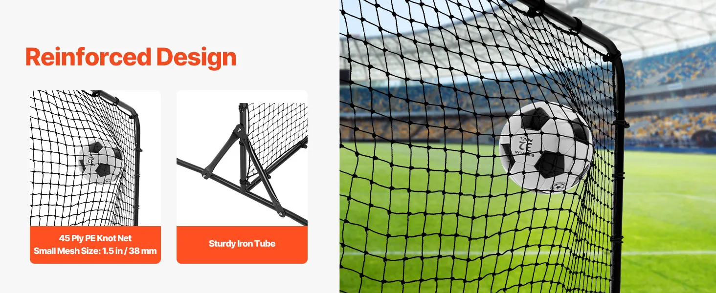 Stevige constructie: het voetbal-reboundernet is gemaakt van hoogwaardige materialen die voldoen aan de eisen van buitentraining. Het 45-laags PE-knoopnet zorgt voor duurzaamheid. Dankzij de stevige ijzeren buis kunt u zich concentreren op de training zonder dat u zich zorgen hoeft te maken over de integriteit van de apparatuur.