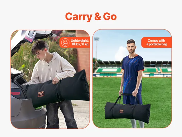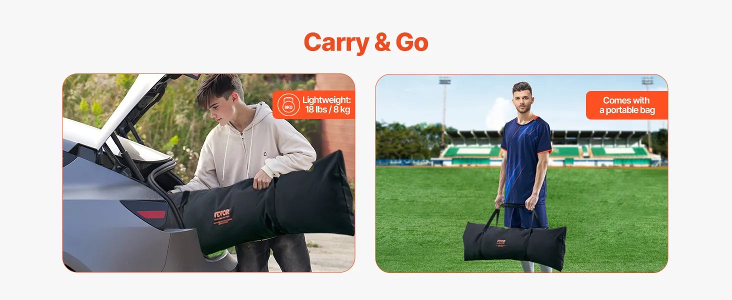 Of je nu naar het plaatselijke park, een oefenveld of de tuin van een teamgenoot gaat, dit net staat altijd klaar om je te vergezellen dankzij het lichtgewicht ontwerp en de draagbare tas.