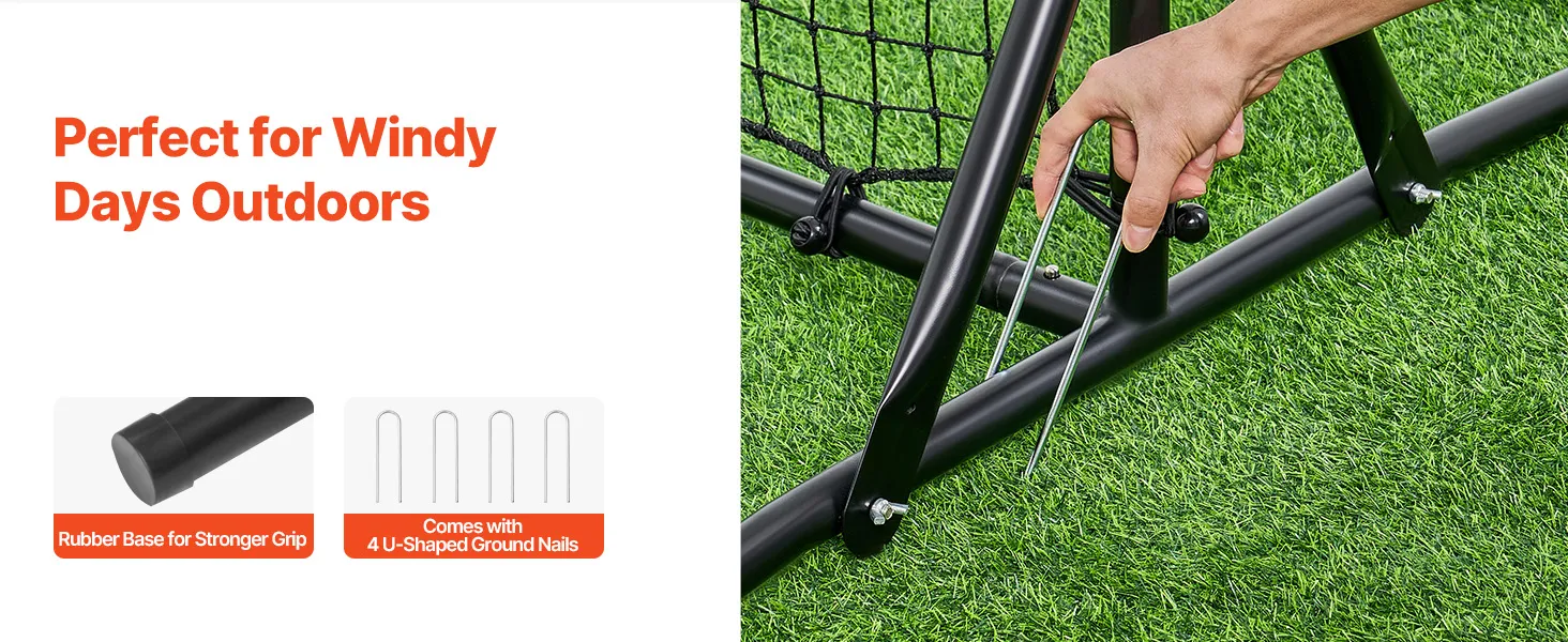 Stabiliteit voor succes: Het doelnet is voorzien van 4 U-vormige grondspijkers. Hoe intens je training ook wordt, de mesh blijft stabiel en biedt een betrouwbaar platform om je vaardigheden te verbeteren.