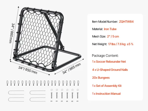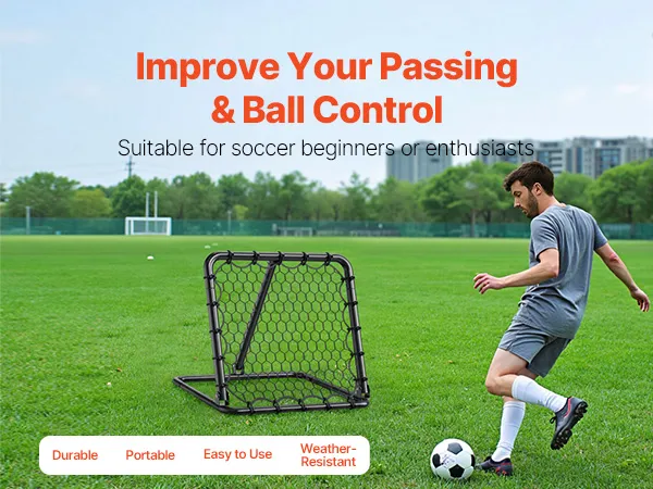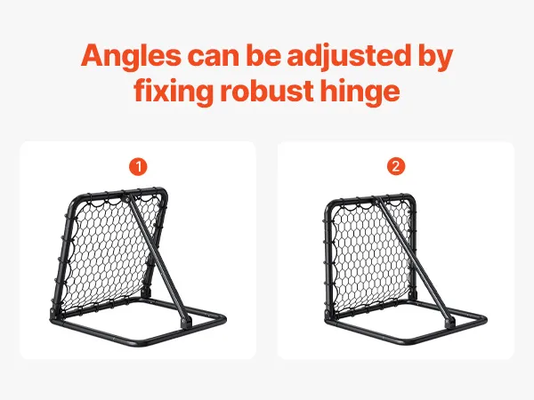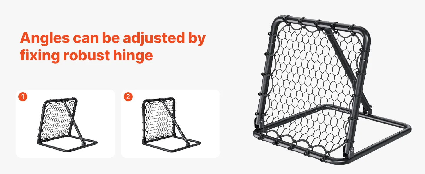 VERSTELBARE HOEK: Ons voetbal-reboundernet is voorzien van een drijfstang met gaten en verwijderbare plastic onderdelen. Met deze componenten kunt u eenvoudig de hoek van het net aanpassen om verschillende stuiterhoogtes te bereiken. Deze flexibiliteit zorgt ervoor dat het oefenvoetbalnet aan een breed scala aan trainingsbehoeften kan voldoen.