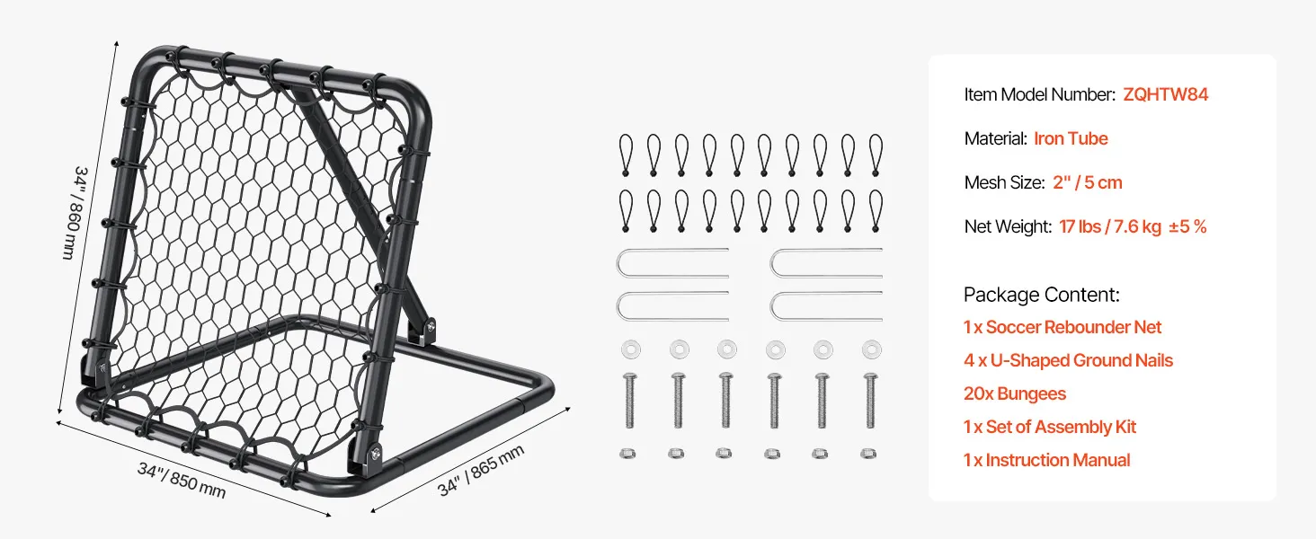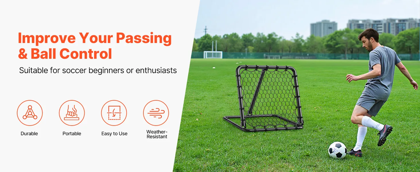 VEVOR Soccer Rebounder Kick-Back Net 34 x 34 inch Draagbare voetbaltrainingscadeaus, doelnet met volledig verstelbare hoeken, hulpmiddelen en uitrusting voor alle leeftijden