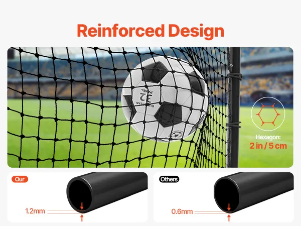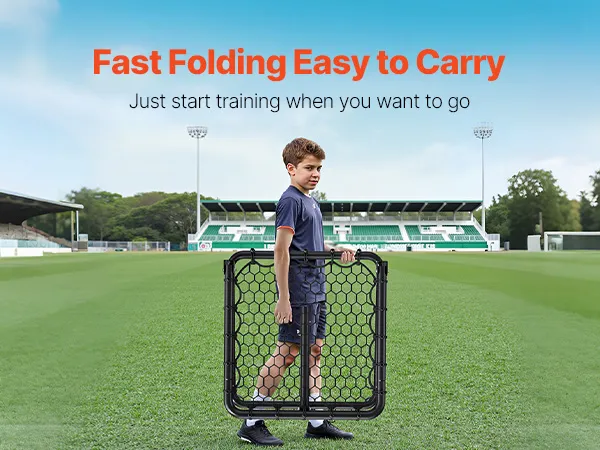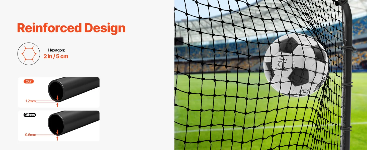 Opvouwbaar en draagbaar: ons doelnet is gemakkelijk te transporteren, monteren en op te slaan. Vouw eenvoudig de standaard aan de achterkant in. Het is zo gebruiksvriendelijk dat zelfs kinderen er gebruik van kunnen maken. Eenmaal opgevouwen neemt hij weinig ruimte in beslag, waardoor u hem kunt opbergen in kleine ruimtes zoals garages, bijkeukens of achter deuren.