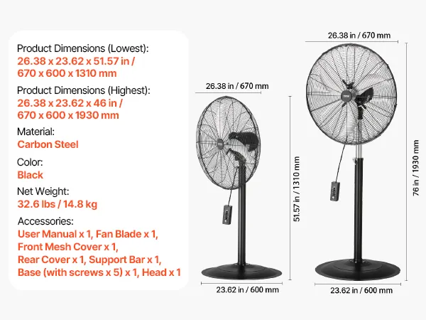 Height Adjustment: Our bedroom fan offers a height adjustment range from 51.2 to 76 inches, allowing you to customize the fan's height based on your indoor activities or workspace needs