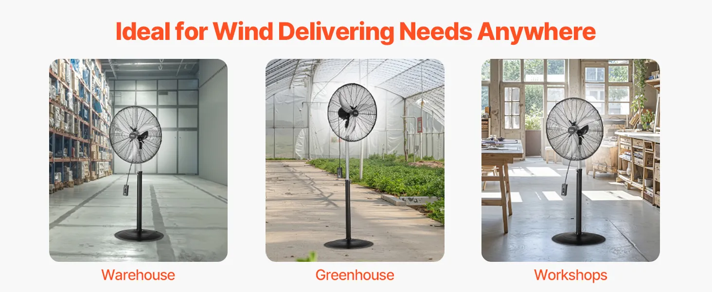 This pedestal fan is lightweight and easy to move, allowing you to bring coolness to any space. Whether it's the bedroom, living room, office, or warehouse, enjoy a refreshing breeze wherever you are.
