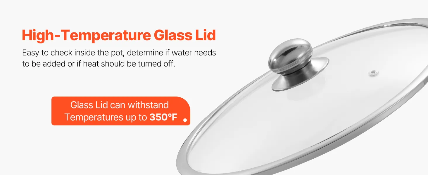 De commerciële sauspot is uitgerust met een hittebestendig glazen deksel dat temperaturen tot 176,67℃ kan weerstaan, waardoor veilig gebruik wordt gegarandeerd.