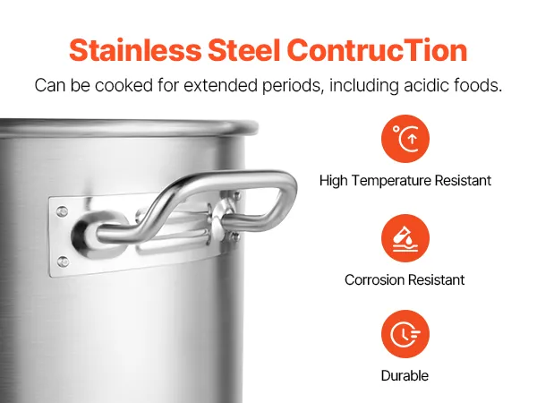 De robuuste soeppan is volledig gemaakt van hoogwaardig roestvrij staal en biedt uitstekende hitte- en corrosiebestendigheid. Dit garandeert een lange levensduur bij het smoren en koken van zure ingrediënten op hoge temperaturen!