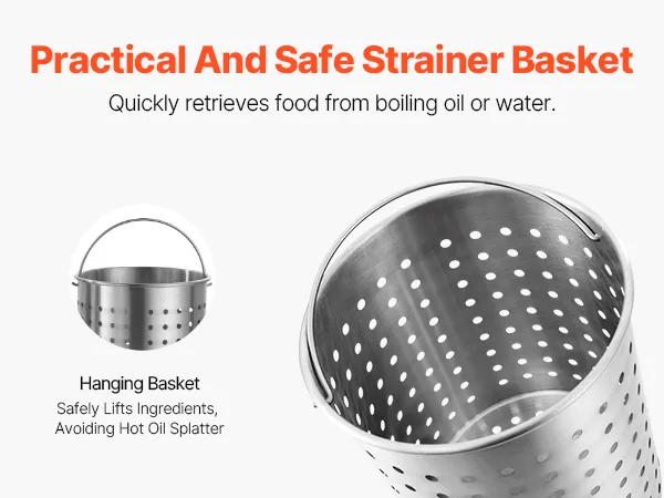 The strainer basket has a tripod at the bottom, keeping the food elevated and preventing sticking or burning, making our commercial grade sauce pot easy to clean.