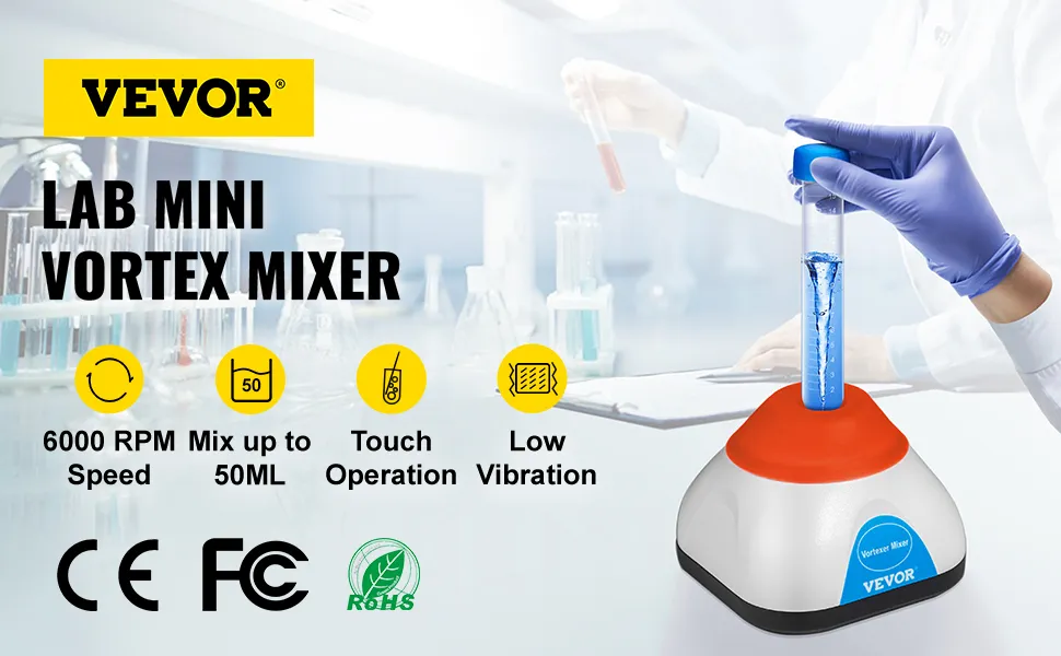 Onze vortexmixer werkt op een vaste snelheid van 6000 RPM met een orbitale diameter van 6 mm, waardoor een onmiddellijke en krachtige menging wordt bereikt. Verkrijgbaar met een maximale mengcapaciteit van 50 ml en een snelle mengfunctie van 5 seconden, waardoor verschillende soorten monsters binnen enkele seconden worden gemengd.