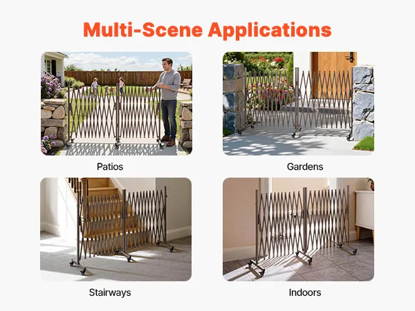 Opvouwbaar en ruimtebesparend: Dit draaibare schaarhek is eenvoudig op te vouwen wanneer het niet in gebruik is en vergrendelt veilig dankzij de geïntegreerde vergrendelingsclip. Ideaal voor terrassen, tuinen, trappenhuizen en andere leefruimtes.