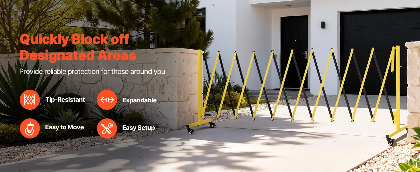 • Opvouwbaar en ruimtebesparend: Deze uitschuifbare afrastering kan eenvoudig worden opgevouwen wanneer deze niet in gebruik is en wordt dankzij de geïntegreerde vergrendelingsclip stevig vastgezet. Ideaal voor opritten, magazijnen, bouwplaatsen en commerciële liften.