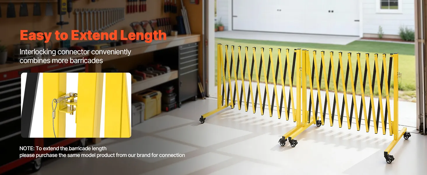 VEVOR Uitschuifbare schaarpoort, dubbele barrière met vergrendelbare wielen, verstelbare hoogte 3,94 m, mobiele veiligheidsbarrière voor waarschuwingsdoeleinden, metalen barricade voor buiten- en industrieel gebruik VEVOR Uitschuifbare schaarpoort, dubbele barrière met vergrendelbare wielen, verstelbare hoogte 3,94 m, mobiele veiligheidsbarrière voor waarschuwingsdoeleinden, metalen barricade voor buiten- en industrieel gebruik