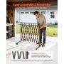 VEVOR Uitschuifbare schaarpoort met vergrendelbare wielen, in hoogte verstelbaar tot 3,07 m, mobiele veiligheidsbarrière voor buiten met waarschuwingsfunctie, metalen barricade voor buiten- en industrieel gebruik