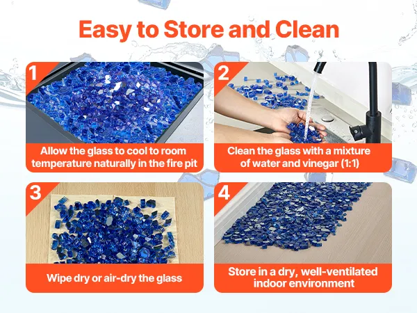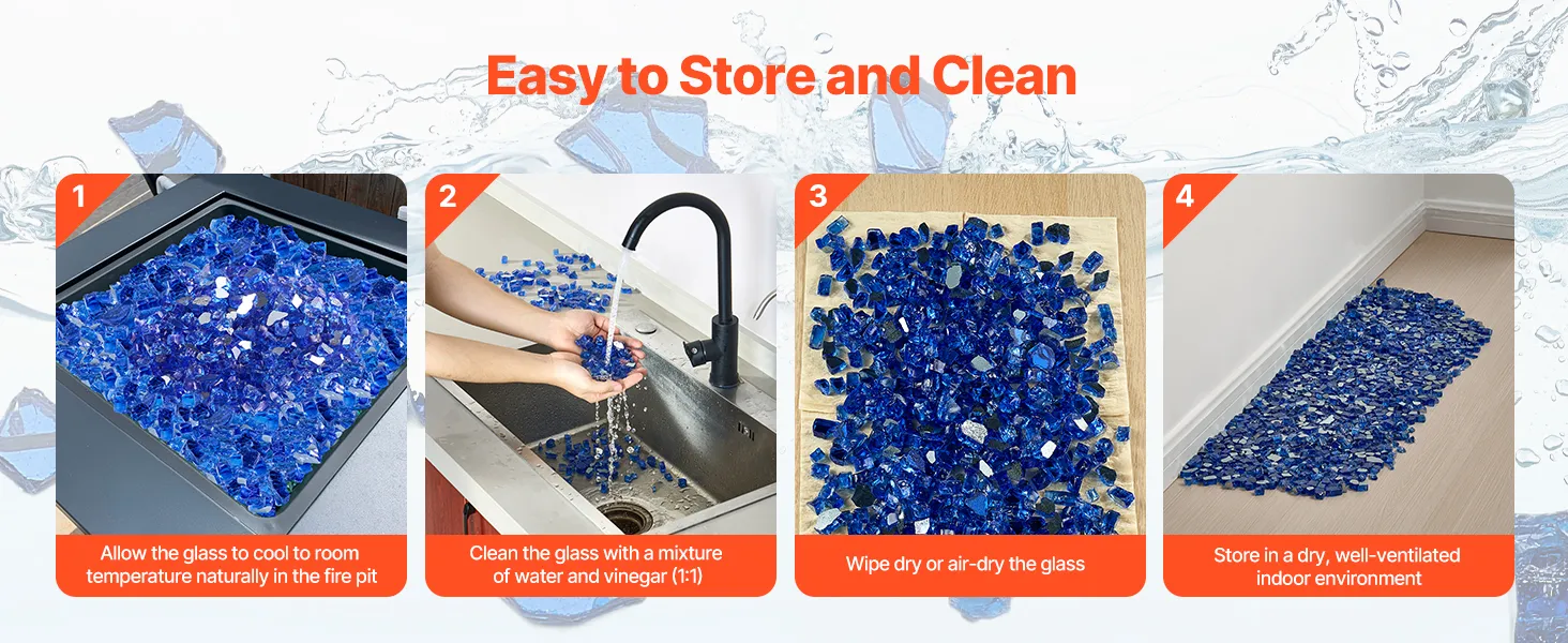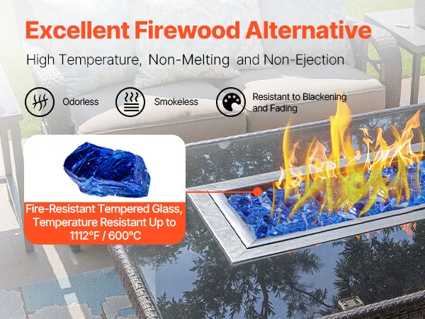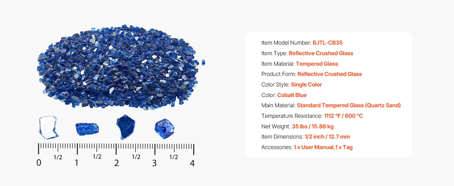 Levendige kleuren: 15,88 kg kobaltblauw vuurschaalglas, 12,7 mm dik. Het voegt een vleugje sprankeling toe aan elke omgeving, gloeit dag en nacht helder en creëert een warme en romantische sfeer.