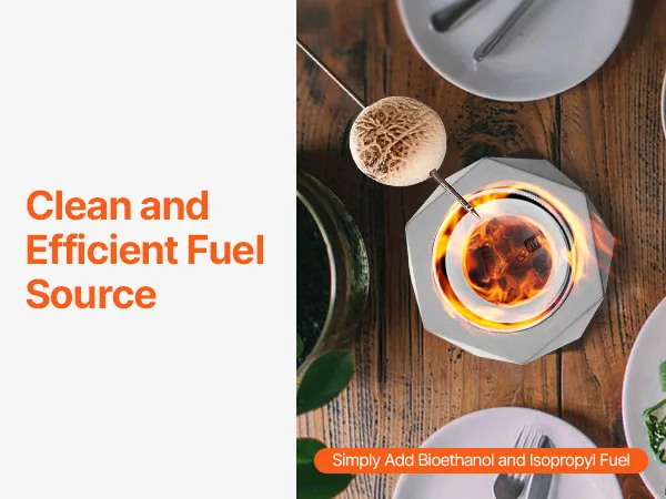 Deze efficiënte tafelvuurplaats heeft een rookloos ontwerp voor continu branden. Brengt warmte en sfeer op bijeenkomsten, waardoor het de perfecte keuze is om plezier te delen met familie en vrienden.