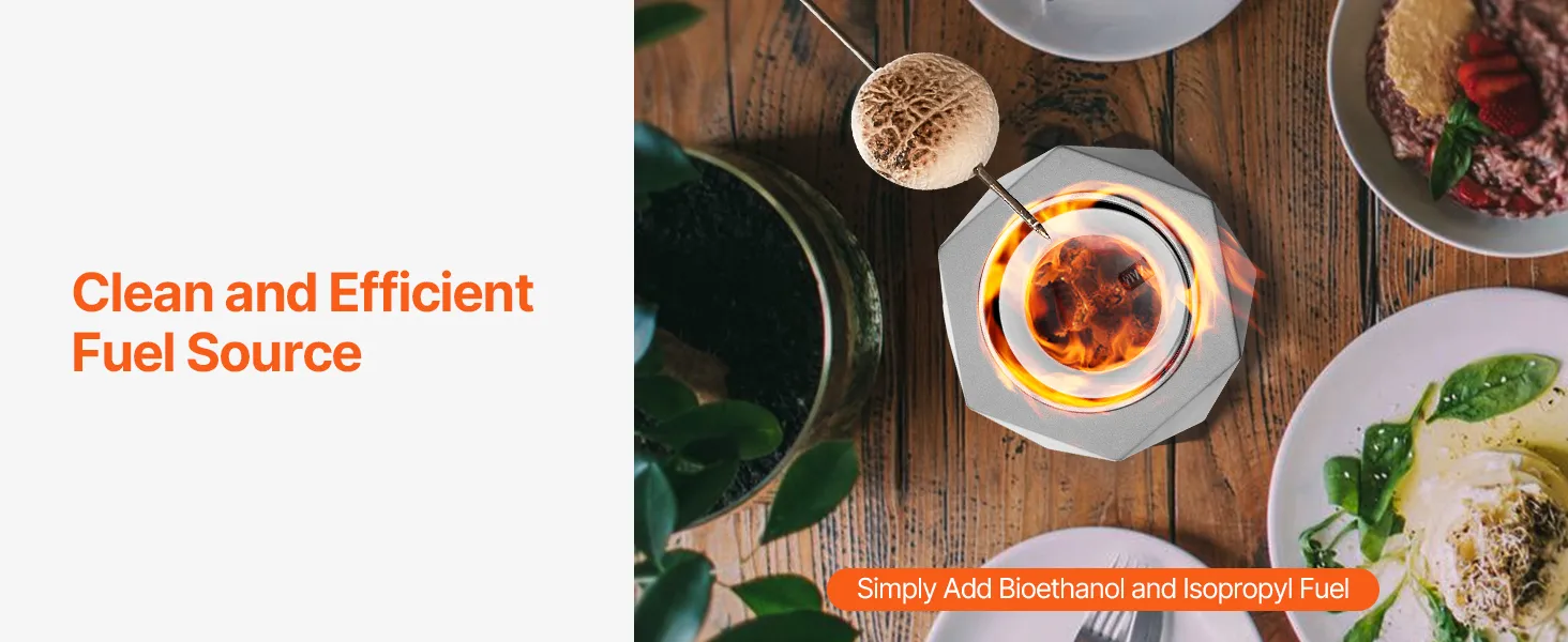 45-60 minuten continue brandtijd: Met een verbrandingskamer van 0,17 liter zorgt deze vuurtafel voor een langdurige verbranding en is hij compatibel met zowel bio-ethanol als isopropylalcohol, die voor extra gemak gemakkelijk verkrijgbaar zijn in supermarkten.