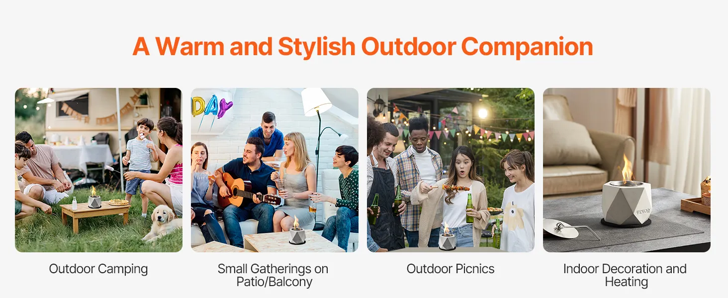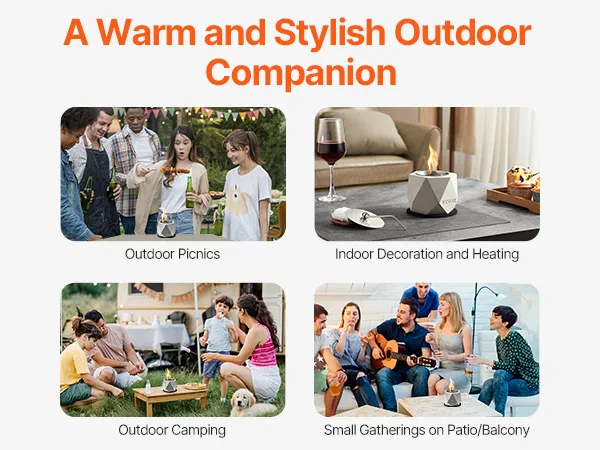 Onze tafelvuurplaats is compact en licht en gemakkelijk te vervoeren, waardoor hij de perfecte aanvulling is op kampeertrips en terrasbijeenkomsten om onderweg voor warmte te zorgen.