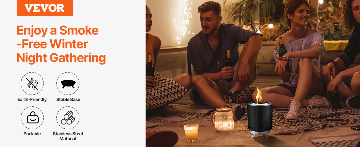 Deze efficiënte tafelvuurplaats heeft een rookloos ontwerp voor continu branden. Brengt warmte en sfeer op bijeenkomsten, waardoor het de perfecte keuze is om plezier te delen met familie en vrienden.