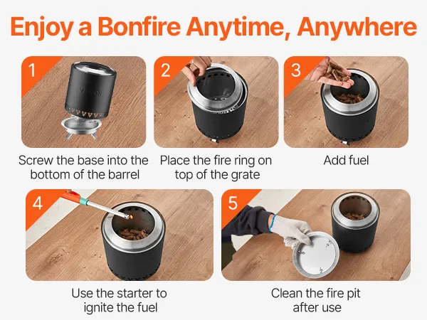 Geniet van de charme van een kampvuur met deze tafelvuurplaats! Steek gewoon de vuurring in de basis, voeg brandstof toe, steek aan met een aansteker en ruim op als je klaar bent - zo eenvoudig is het!