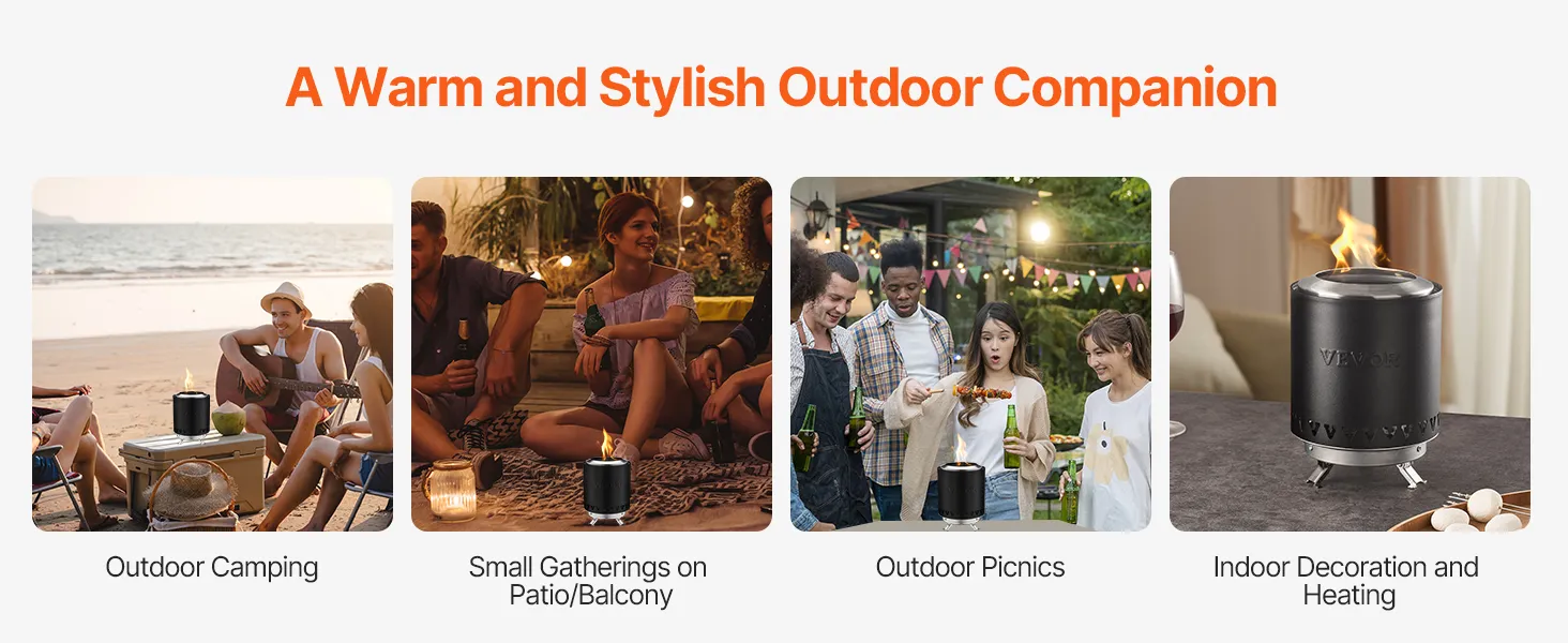 Stabiel ontwerp: de tafelvuurplaats heeft een stabiel ontwerp met een laag zwaartepunt om stabiliteit tijdens gebruik te garanderen. Of u ze nu op een tafelblad of op de vloer plaatst, u kunt ze met vertrouwen gebruiken. De roestvrijstalen container zorgt voor duurzaamheid en corrosiebestendigheid, terwijl de verbeterde verwijderbare bodem het schoonmaken eenvoudiger maakt.