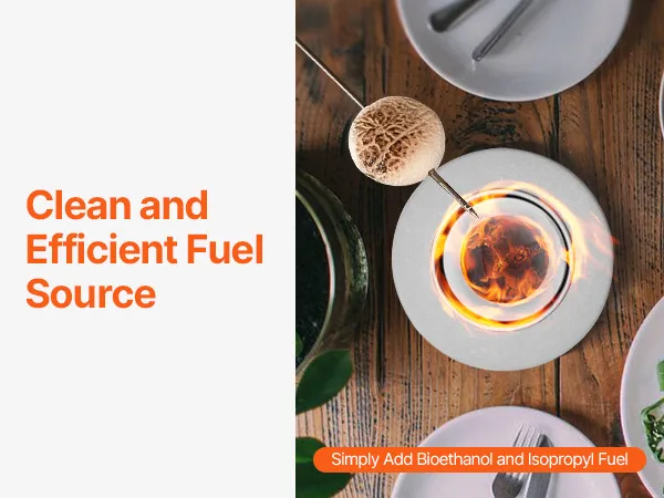 45-60 minuten continue brandtijd: Met een verbrandingskamer van 0,17 liter zorgt deze vuurtafel voor een langdurige verbranding en is hij compatibel met zowel bio-ethanol als isopropylalcohol, die voor extra gemak gemakkelijk verkrijgbaar zijn in supermarkten.