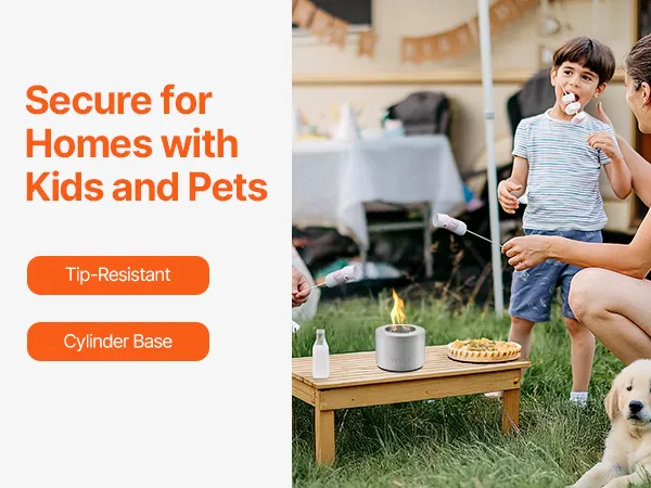 Uitgerust met een stevige basis en een verlaagd zwaartepunt is onze vuurkorf kantelbestendig en veilig te gebruiken bij levendige bijeenkomsten. De vuurkorf is voorzien van een blusdeksel, waardoor u de vlam op elk moment gemakkelijk onder controle kunt houden.