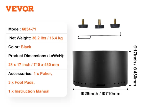 Onze vuurkorfkachel bevat een uitgebreide accessoireset, inclusief drie-voet pads en één vuurpook. De voetpad verhoogt de kachelbasis voor stabiliteit en voorkomt kantelen, terwijl de vuurpook u helpt hout aan te passen en as te reinigen. Onze vuurkorf is een uitstekende keuze, of u hem nu gebruikt voor kamperen, buitenbijeenkomsten of gewoon om van uw vuur in de achtertuin te genieten.