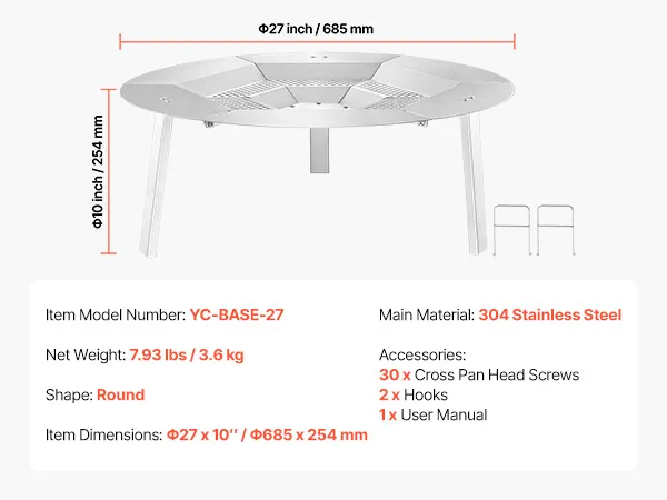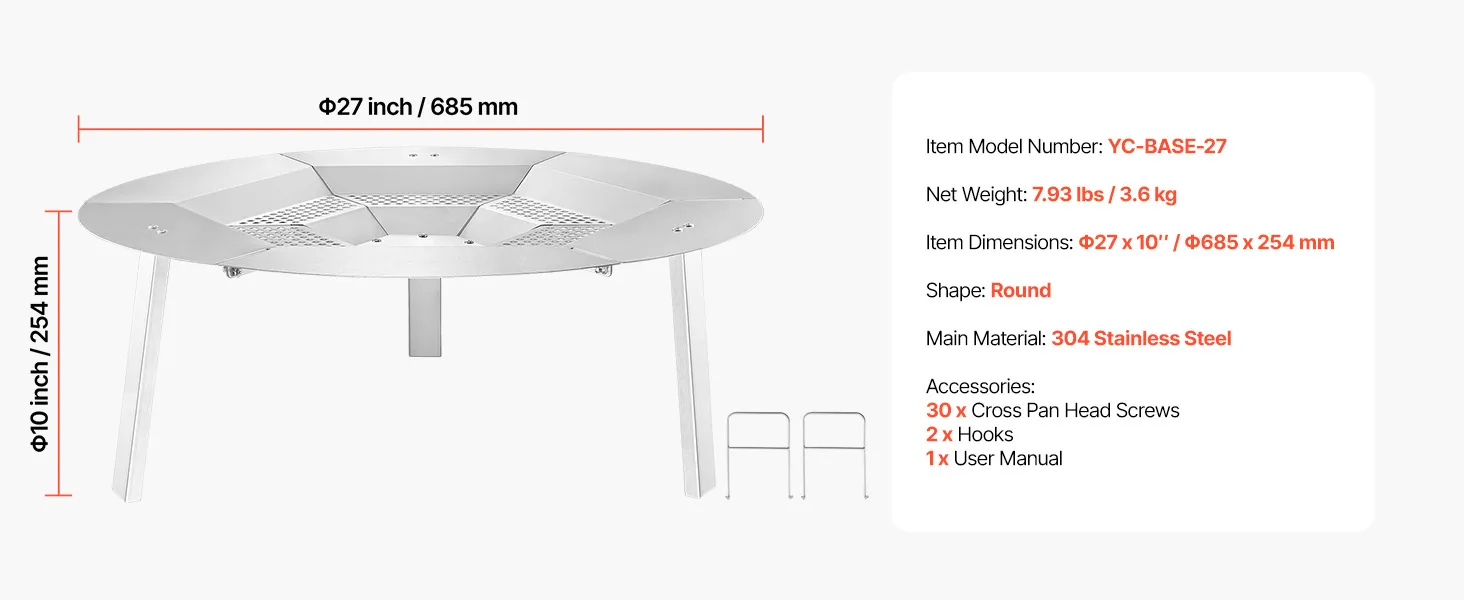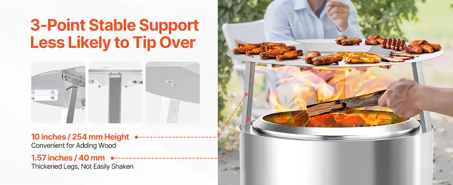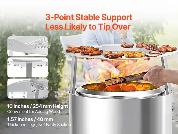 Stabiel ontwerp: Het 3-punts pootondersteuningssysteem zorgt voor stabiliteit bij verschillende vuurkorven en voorkomt kantelen en onbedoeld vallen. Ideaal voor permanente vuurkorven in de tuin en draagbare kampeerfornuizen voor extra veiligheid.