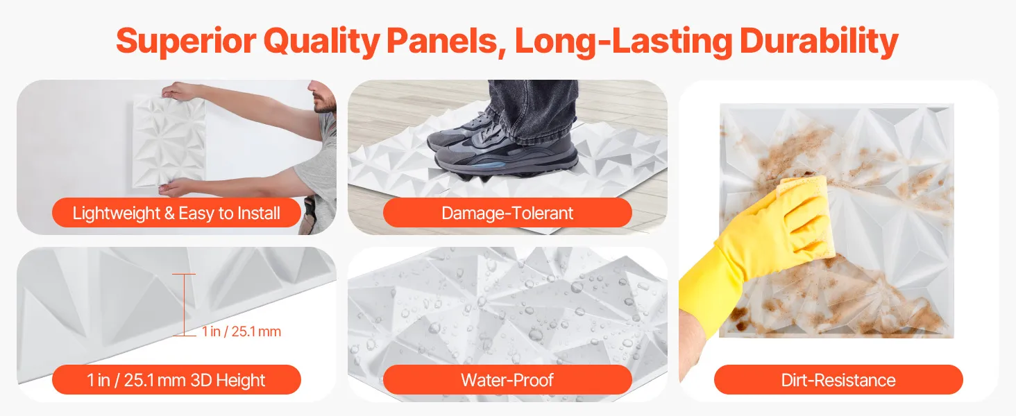 Installation Made Easy: Lightweight and user-friendly, our geometric wall panels allow for one-person installation. Preserve your original walls by using double-sided tape for a non-permanent bond, or opt for glue to securely and permanently adorn your walls.