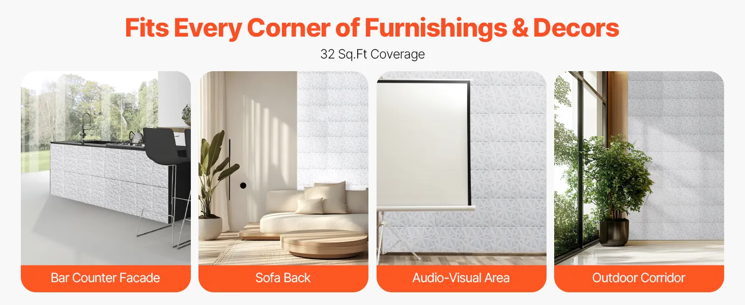 Generous Coverage Area: Each set includes 33 faux wall panels covering a total of 32 sq.ft. Ideal for decorating behind your sofa, around your TV area, bar counters, or enhancing your dining and living room walls.
