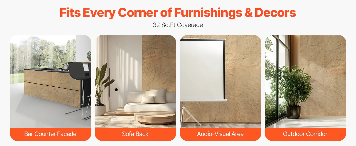 Generous Coverage Area: Each set includes 4 faux wall panels covering a total of 32 sq.ft. Ideal for decorating behind your sofa, around your TV area, bar counters, or enhancing your dining and living room walls.