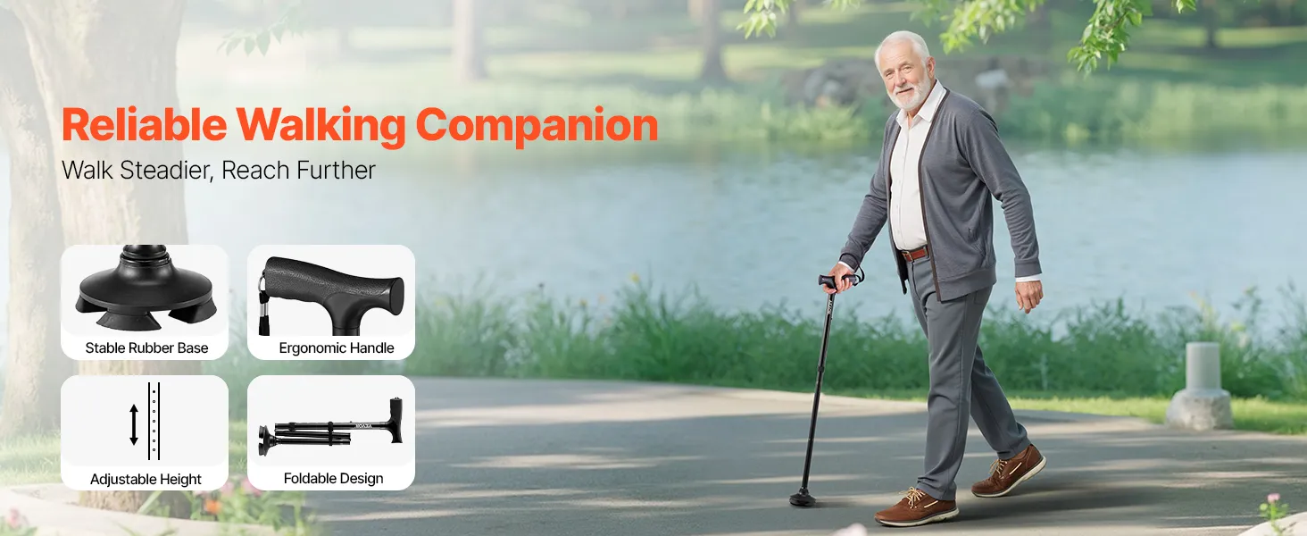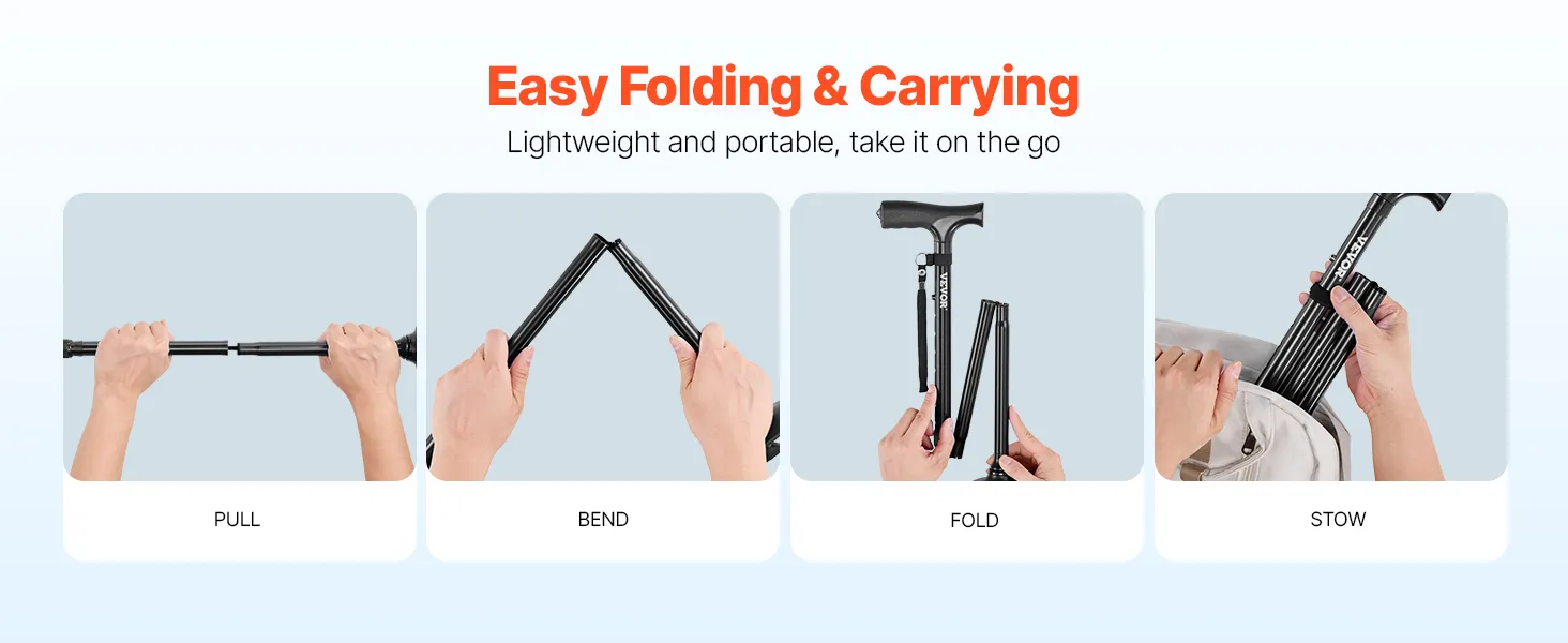 Dit loophulpmiddel voor dames en heren is gemaakt van lichtgewicht materialen en is gemakkelijk mee te nemen. Dankzij het compacte, opvouwbare ontwerp kan hij gemakkelijk in een rugzak of bagage worden opgeborgen, waardoor hij een ideale metgezel is voor gebruik binnen en buiten.