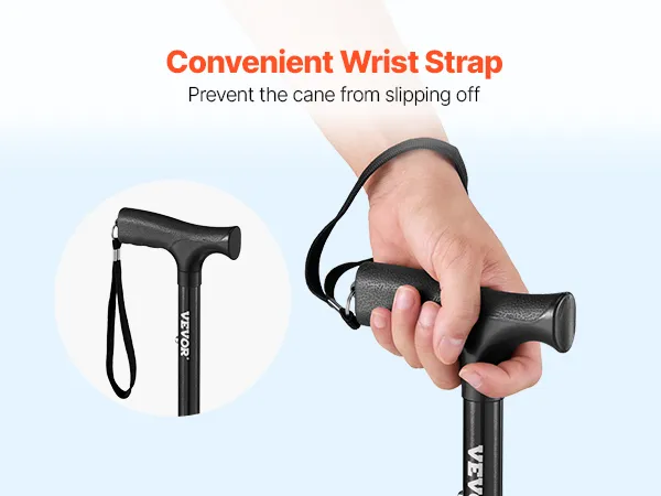 De doordachte polsband voorkomt dat de opvouwbare wandelstok per ongeluk valt en verhoogt zo de veiligheid tijdens het gebruik.