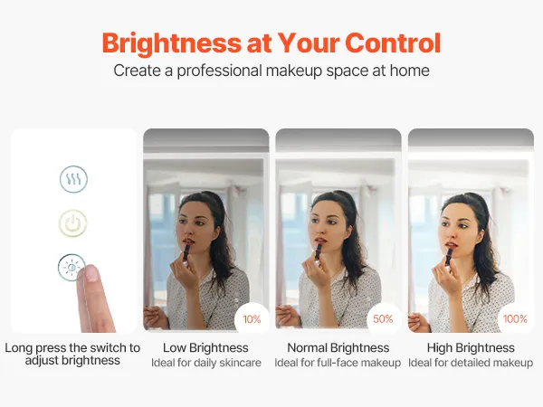 Deze badkamerspiegel met verlichting biedt onbeperkte helderheidsniveaus, waardoor u flexibel bent en de lichtintensiteit kunt aanpassen aan verschillende omgevingen en persoonlijke voorkeuren, en zo aan verschillende behoeften kunt voldoen.