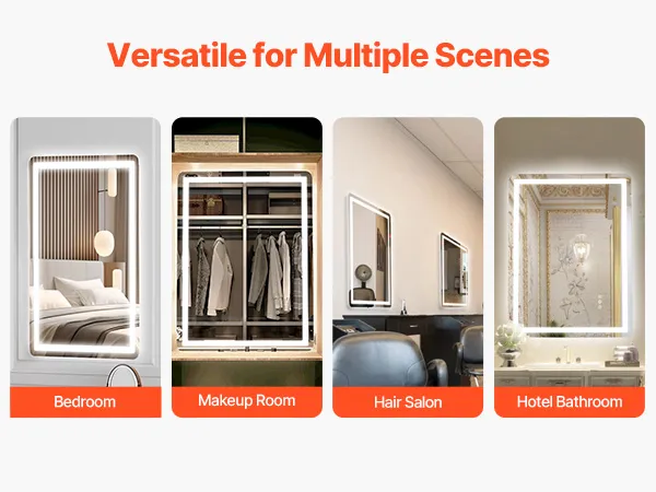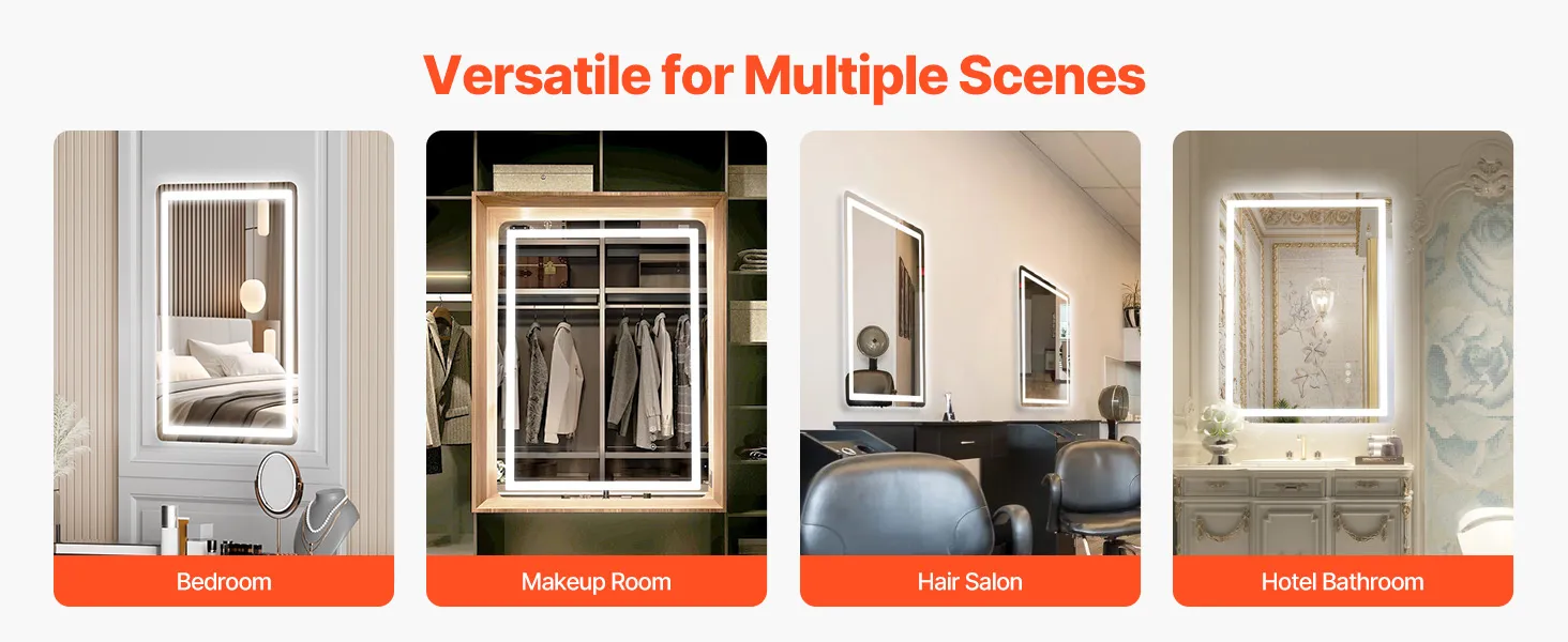 Onze verlichte badkamerspiegel is niet alleen geschikt voor thuis, maar ook voor salons, hotels, kantoren en andere openbare ruimtes. Het is praktisch en verfraait elke kamer.