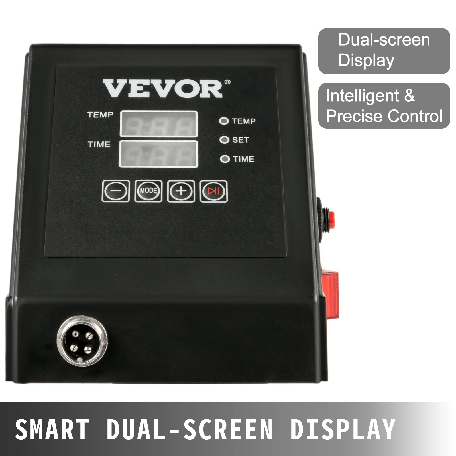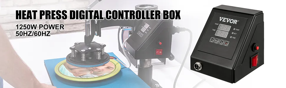 De digitale LCD-controller van 1250 W maakt gebruik van het intelligente temperatuurregelsysteem van de vijfde generatie; dubbele rij, duidelijk en intuïtief; gebruiksvriendelijk toetsenbordontwerp zorgt voor een probleemloze, soepele bediening. Match met veel hittepersmachines, zoals de hittepers van de pet, mok en T-shirt.