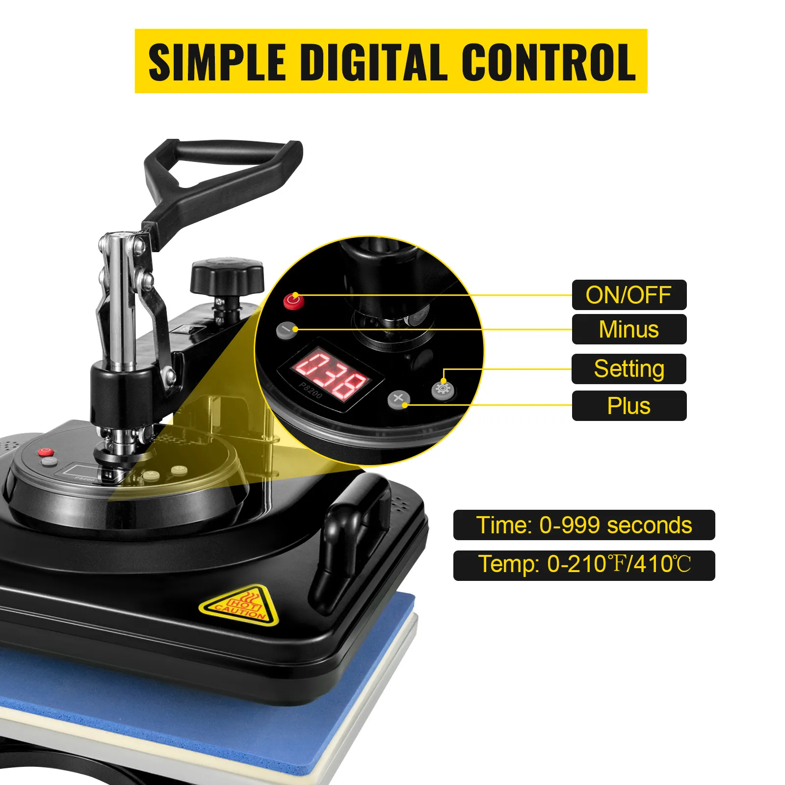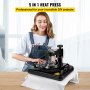 Met deze 5-in-1 hittepersprinter met verschillende hulpstukken, waaronder een rollenpers, een hoeden-/petpers, een mokpers en een degelpers, kunt u ontwerpen overbrengen op T-shirts, petten, mokken, borden en andere platte items.