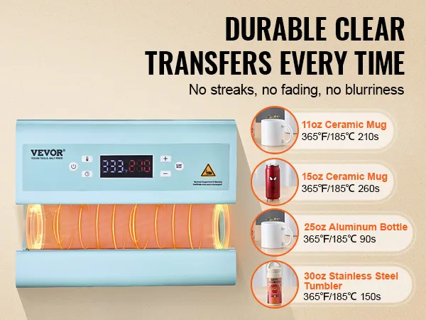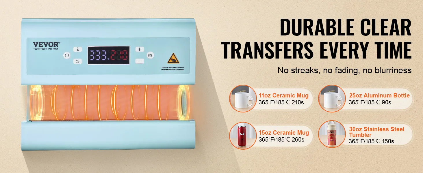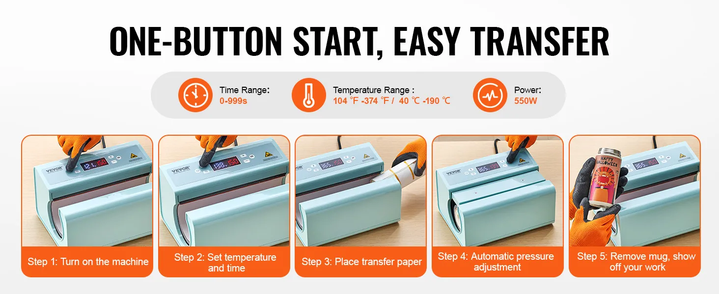 The even heating technology ensures consistent, high-quality transfer results on every cup, with no fading issues. Whether you're working with ceramic or metal cups, this mug press quickly and evenly transfers designs, suitable for various sizes and materials.