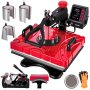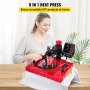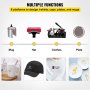 Deze shirtdrukmachine met verschillende fittingen, waaronder een platenpers, een hoed / pet-pers, een mokpers, een aluminium flessenpers, twee plaatpersen en twee onderzetters, waardoor patronen kunnen worden overgebracht op T-shirts, petten, mokken, borden , en flessen.